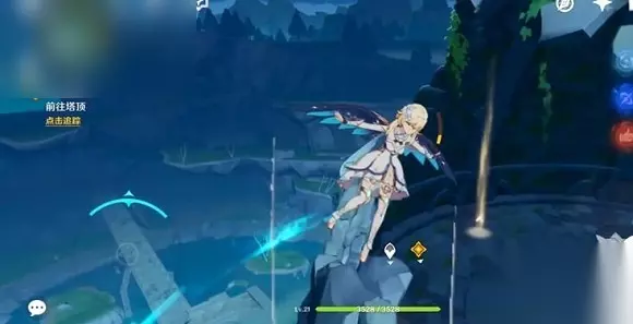 4、之后就可以到达风墙的位置处,然后根据任务指引顺着风墙向前飞。