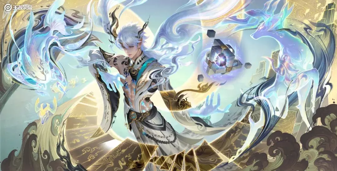 我们以白泽神兽的传说为主题灵感,将诸葛亮的气质特点与东方幻想式风格融合,撷取记载天下妖兽的白泽图为元素,设计其化天地、收妖兽,运筹帷幄于内,洞悉天地万物的形象。
