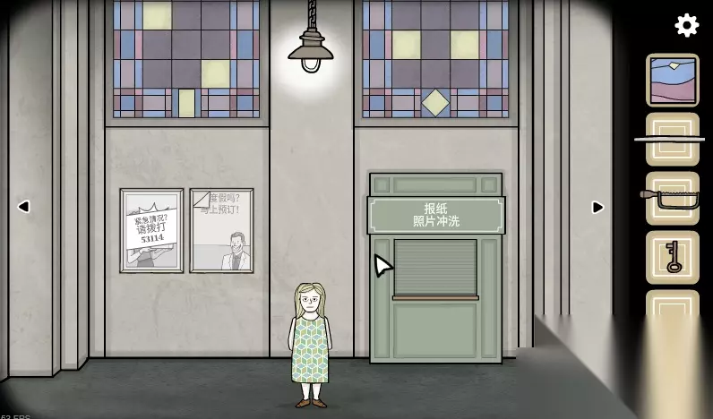11、切换到时钟画面,打开rose掉在地上的包,获得金表和螺丝刀,在猫头鹰雕像下找到劳拉,获得胶卷。