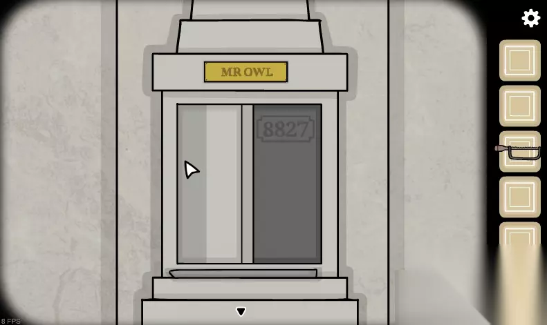 9、来到猫头鹰雕像处,点亮两只眼睛,用铁杆撬开下面的门,获得密码8827。