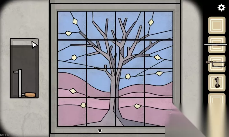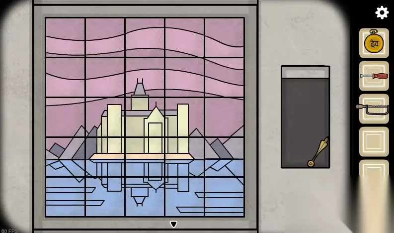 5、来到电话亭上面的窗花,把拼图放进去,开始旋转拼图(可以上下左右旋转),转成一副完整的画,获得旋转把手。