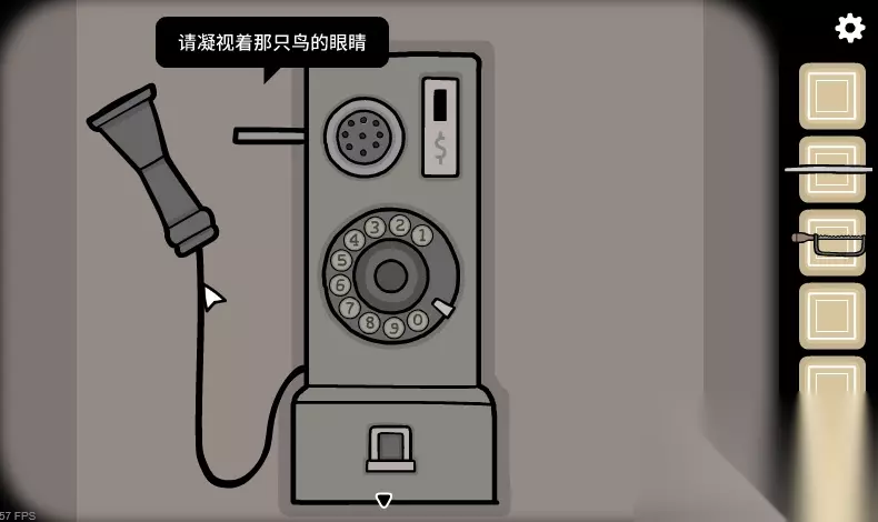 8、来到电话亭处,用钥匙打开门,投入硬币,拨打电话53114,接听电话得到线索,猫头鹰雕像的眼睛。