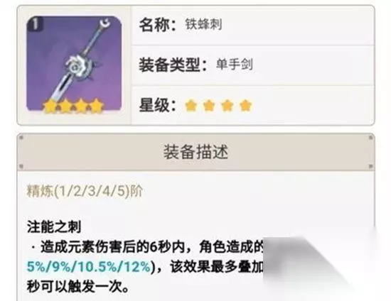 铁锋刺 铁锋刺人称小苍古,受益于万叶固有天赋2的效果,辅助万叶尽量选择提供提供元素精通属性的武器。同时铁锋刺的武器技能也能提升万叶自身的伤害。但美中不足的是,铁锋刺的效果触发cd是1秒,E技能腾空后直接下落仅能叠加一层。而E技能腾空后延迟发动下落攻击虽然能触发2层效果,但考虑到作为辅助角色。追求这部分的伤害反而浪费了时间舍本逐末,因此不必刻意追求铁峰刺的2层加伤效果。