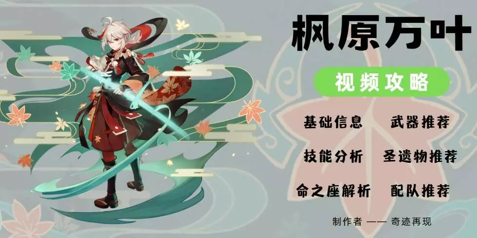 五、原神枫原万叶值得培养吗? 原神枫原万叶值得培养。枫原万叶这个角色虽然在技能上偏向于控制,但大招万叶之一刀的伤害倍率也非常优秀。而且比起温迪要更加夸张,所以还是具有一定的输出能力的,在风元素角色中是强度佼佼者,推荐玩家抽取培养。 六、原神枫原万叶阵容搭配: 1.单元素队 可莉(胡桃/迪卢克)+香菱+班尼特+枫原万叶 刻晴+皇女+班尼特+枫原万叶 甘雨(凯亚)+莫娜+迪奥娜+枫原万叶