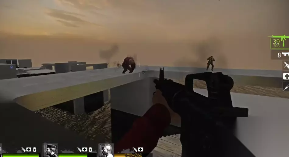 在此地图中生存,战术走位与地形利用至关重要。开局后应快速处理可能存在的零星普通感染者以清理战场。坦克出现时,应立即寻找有利地形,例如高层平台或狭窄的通道,这些位置可以有效限制坦克的移动路径和攻击角度。需要时刻注意地图中存在的致命区域,如护城河或深渊,一旦被坦克击落其中便会立即死亡。团队应尽量保持分散站位以避免被范围攻击波及,但同时要确保相互间的支援距离。直线移动通常比斜向移动更能有效与坦克保持距离。