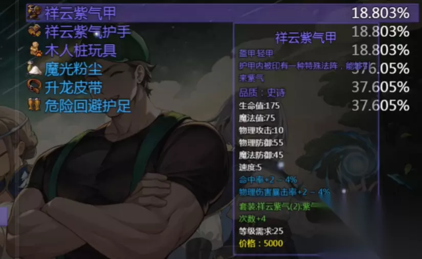 对于拳套角色来说,套装的选择也至关重要。推荐搭配“祥云紫气套”,这套装备包含“祥云紫气甲”和“祥云紫气护手”,这两件装备的加成效果能让你的输出能力得到全面提升。它们是通过卡尔达副本BOSS掉落的,适合拳套角色,特别是对紫气东来拳技能的伤害提升很大。