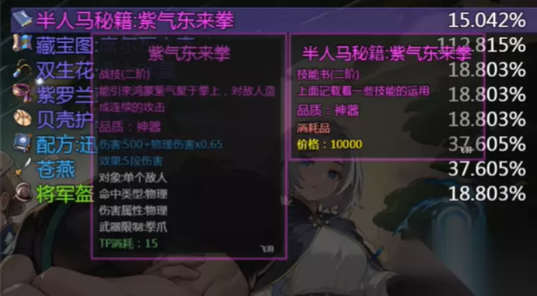 首先,想要打出紫气东来拳的高额伤害,必不可少的就是这本技能书。紫气东来拳可是7层稀有BOSS掉落的技能,需要先有一本才能学习,如果想让技能的伤害更上一层楼,再准备三本强化用的技能书。搭配得当,这招简直能打出让对手痛哭的高伤害。