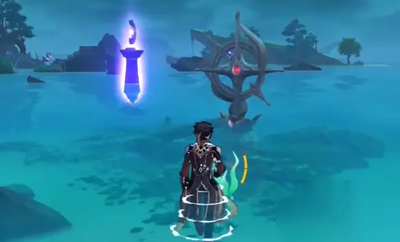 解析:在解开我们的柱子解密后在鸣神磐柱左边的地上就是我们的镇石。
