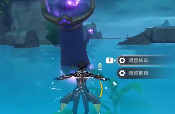 还是在我们前方第四个柱子选择两下调整转向,一下调整仰角。