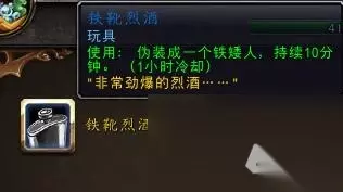 总之,《魔兽世界》中的铁靴烈酒是一个兼具趣味性和实用性的玩具。通过收集奥杜尔圣物,完成相应的任务,玩家们可以获得这个神奇的变身玩具。无论是联盟还是部落,都可以在游戏中找到属于自己的铁靴烈酒,体验成为铁矮人的乐趣。希望每位玩家都能在艾泽拉斯大陆上找到属于自己的乐趣,用铁靴烈酒增添游戏的色彩。在这个充满冒险的世界里,勇敢地前行,探索更多的神秘与奇迹。