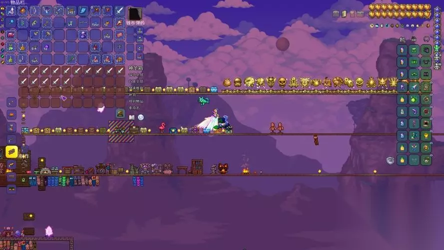接下来需要一个合适的翅膀,星星翅膀是理想选择,它从专家模式下的月亮领主掉落。月亮领主作为游戏最终boss,召唤方式复杂通常需要摧毁天界柱或使用天界符。在专家模式中击败月亮领主后,星星翅膀有概率掉落。星星翅膀本身效果就碾压其他翅膀,水平速度最高84,上升速度最高171都属于是顶尖的。装备后角色按跳跃键起飞,再按一次展开翅膀,空中同时按上下键可以切换悬浮状态,方便精准控制方向。星星翅膀与翱翔之证章配合时,无限飞行自动生效,不再需要坐骑或其他辅助。
