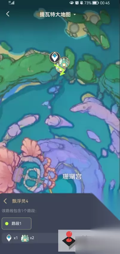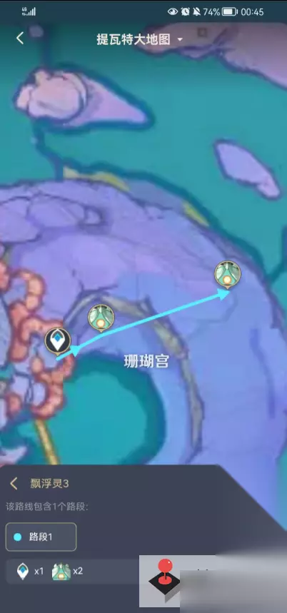 3、珊瑚宫 第一个在传送点东方,位于渊下宫入口附近下; 第二个在第一个点的东方。