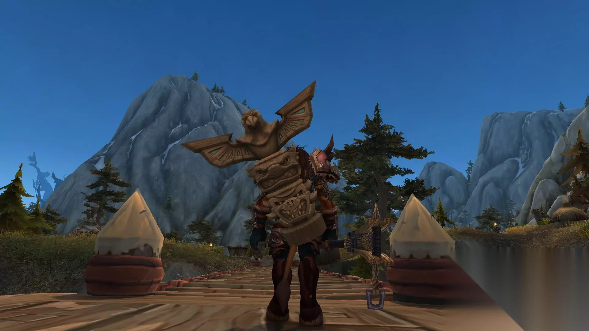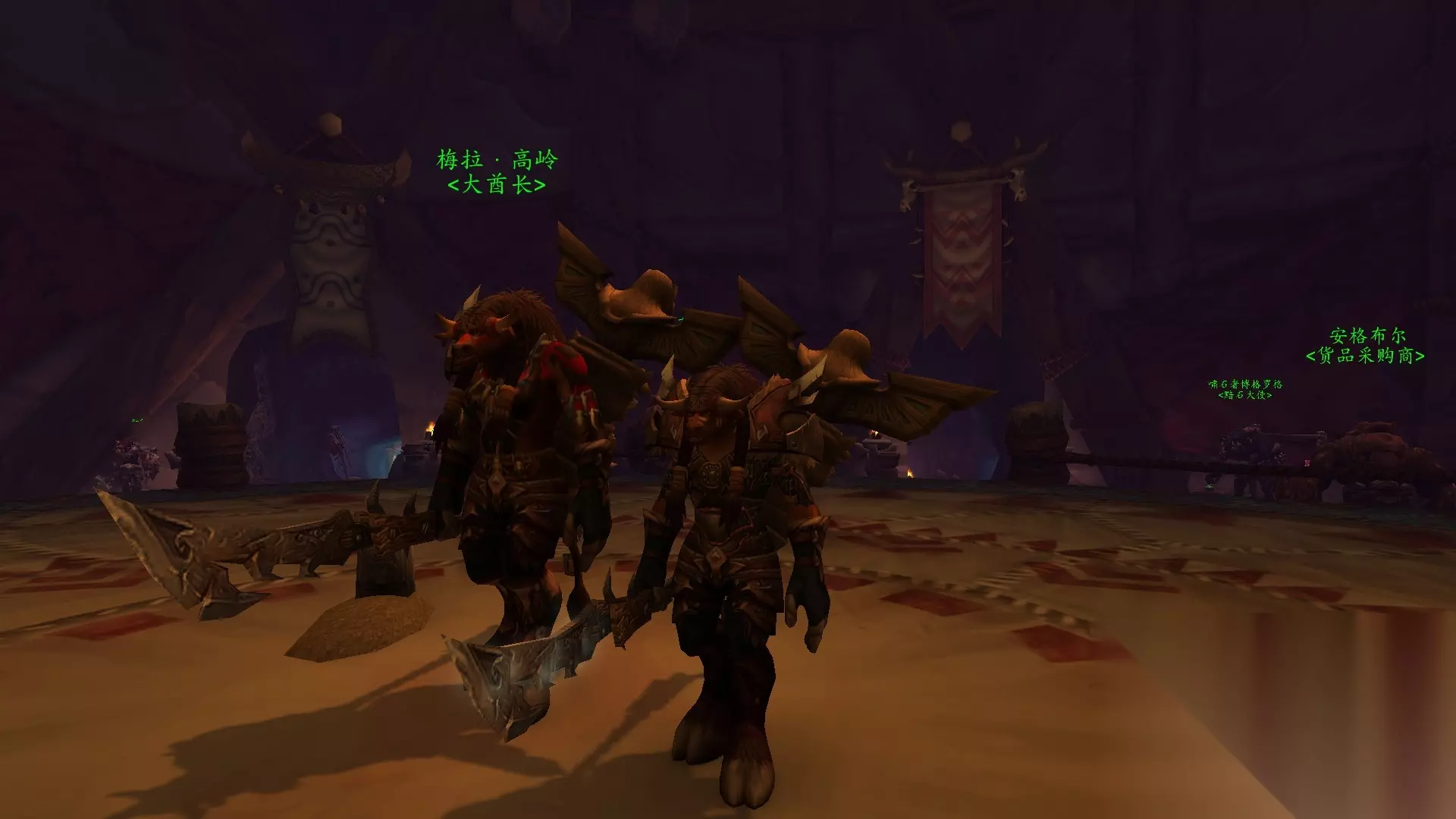 第一次看到至高岭酋长的时候被她和她的图腾帅到了,图腾风特别的牛头人有没有,原来母牛也可以这么霸气,于是决心幻化。终于至高岭声望崇拜,入手图腾:至高岭战争甲胄(zhou)这个是幻化的重点,任何低级的甲胄图腾都没有崇拜图腾的味道有没有。 幻化中有几点遗憾: 1. 梅拉高岭的上衣其实是布甲 巫医的念珠,板甲无法幻化。 3. 肩膀没有单肩模型。 2. 武器自身带了附魔,也没有办法去掉。 但这并不影响我是一头霸气的母牛战士。 效果图: