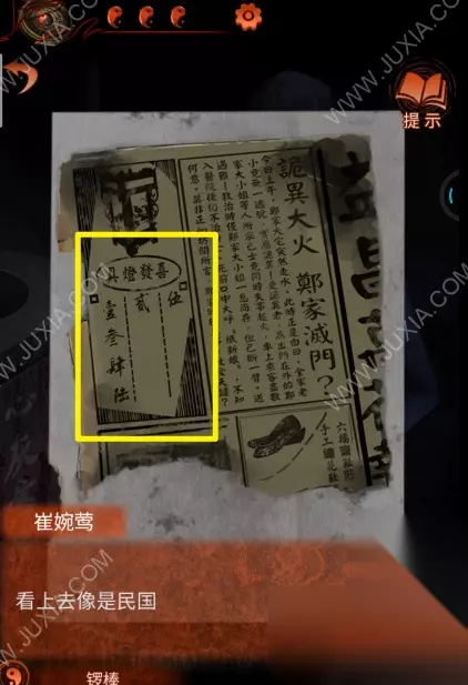 30.来到最右边的场景,点击左边的糍粑摊,在糍粑摊的桌子上获得报纸,查看报纸的背面,在灯笼图案下的大写数字左1346,中2,右5。30 30.1
