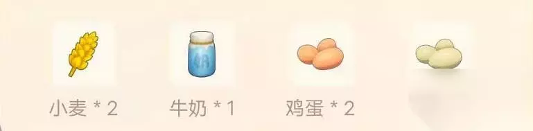 t15_2-t15_1:8.0 标签: 小麦 摩尔庄园手游小麦牛奶蛋粥食谱是什么?小麦牛奶蛋粥制作方法是什么?下面来看看233乐园小编带来的摩尔庄园手游小麦牛奶蛋粥食谱攻略。 小麦牛奶蛋粥 获取途径 研究菜谱 稀有度 二星 解锁SMC等级 32级 餐厅售价 1463摩尔豆 烹饪时间 1小时 保温时间 5小时 所需材料 小麦 * 2、牛奶 * 1、鸡蛋 * 2、鸭蛋 * 1