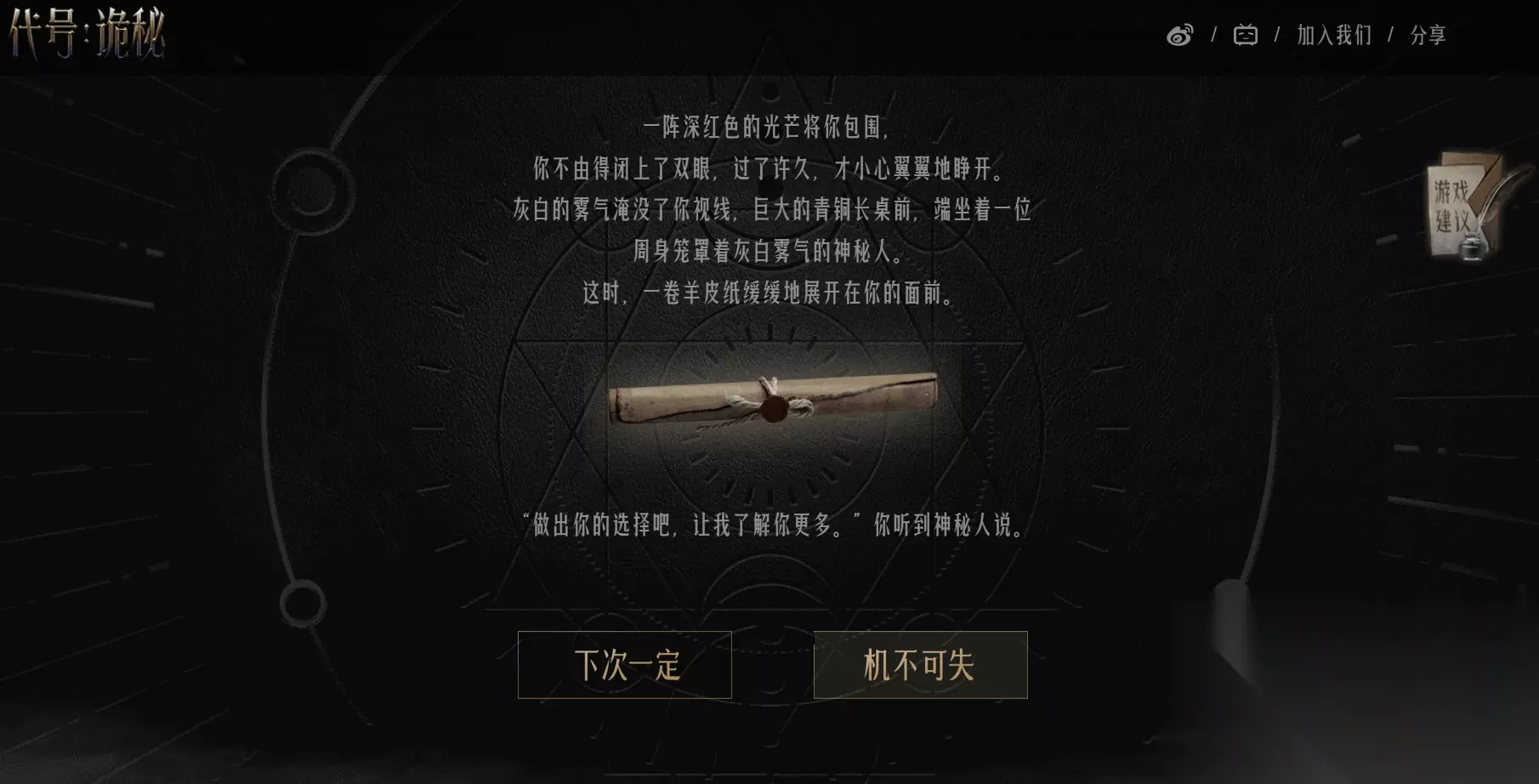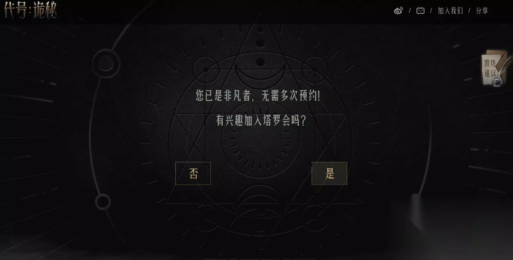 2、选择【加入塔罗会、机不可失】即可进入测试页面;
