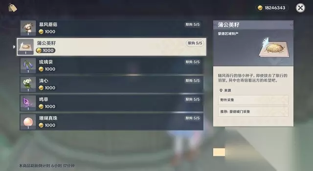 6、在卡琵莉亚的商店里,你可以购买蒲公英的种子。