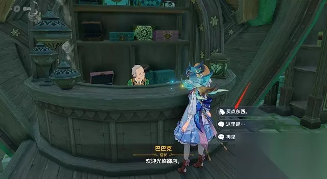 8、到达那里后,与店长巴巴克对话,选择“买点东西”选项。