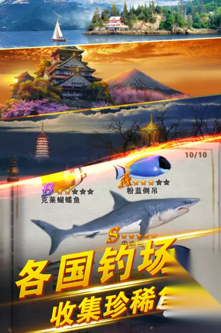 游戏促使你可以享受钓鱼的极致乐趣,游戏为你模拟了世界各地钓鱼名胜景点,你可以边观赏美不胜收的景致边钓鱼。游戏里的鱼类品种极其丰富,都是现实里真实存在的,你有机会大开眼界。游戏里,你看腻了自己的钓鱼竿,卖鱼赚到了钱,就可以去兑换精美的皮肤,让自己的钓鱼竿焕然一新,且吸引鱼上钩的几率也会随之大大增强。 高速下载 普通下载 优先233乐园APP下载 3、《钓鱼世界》