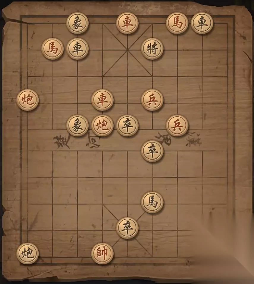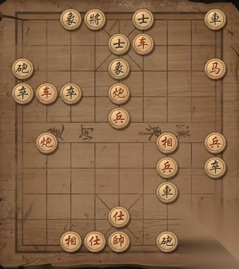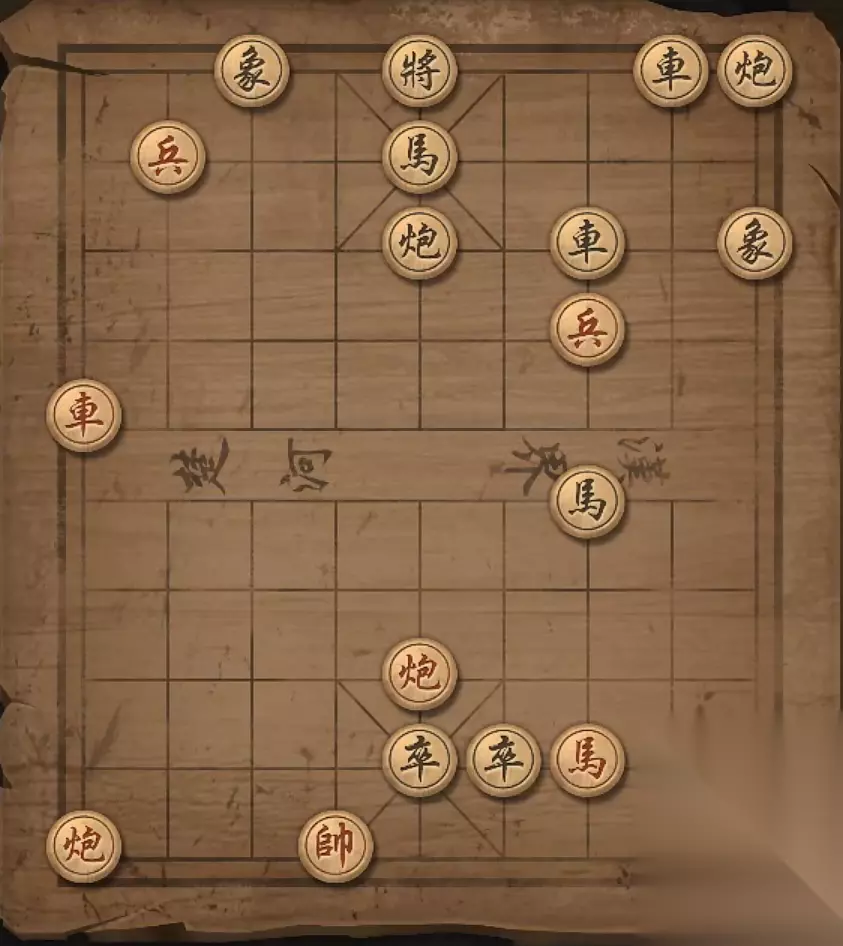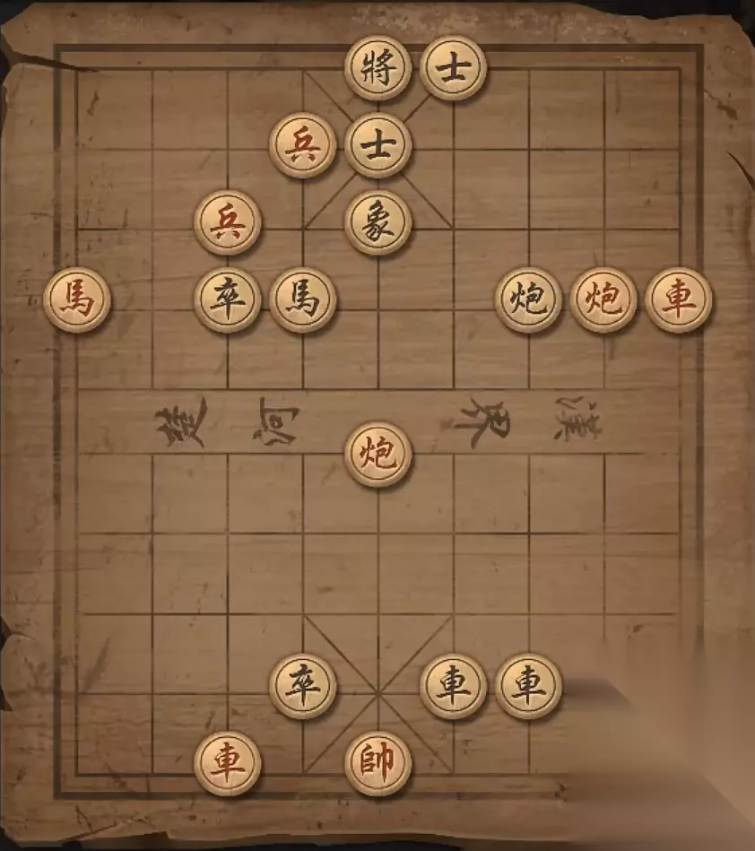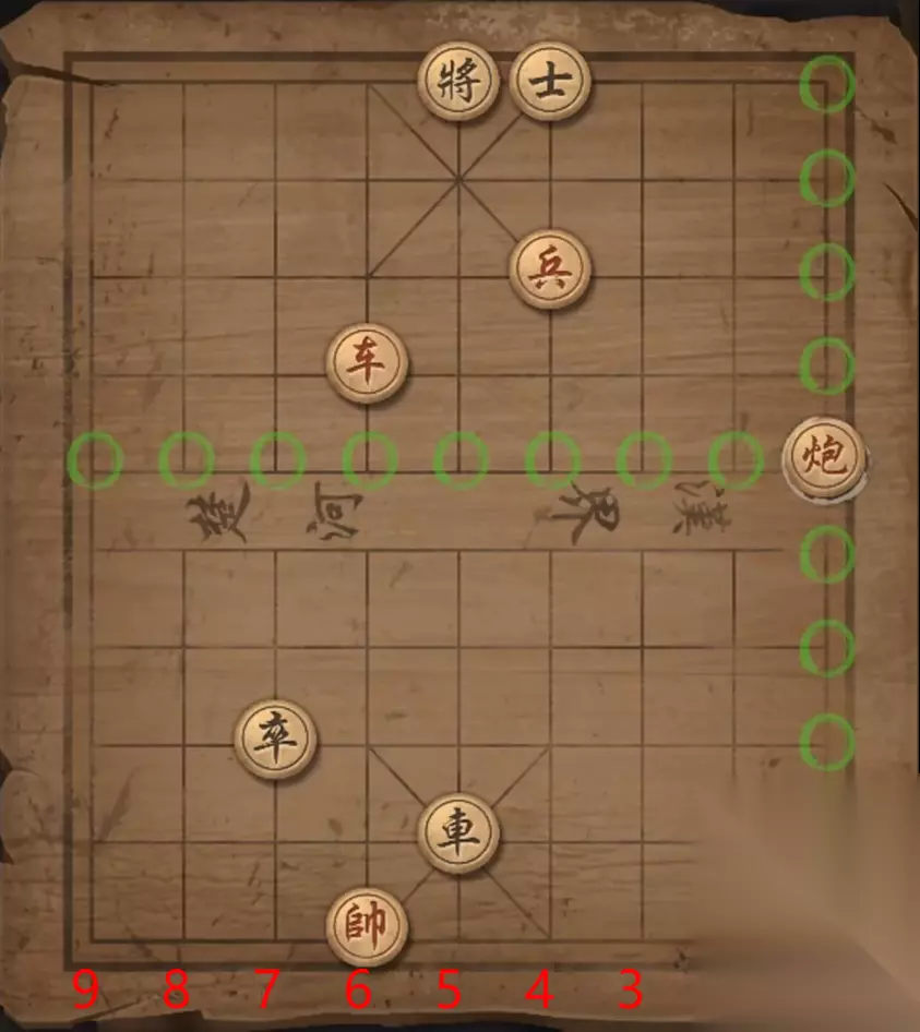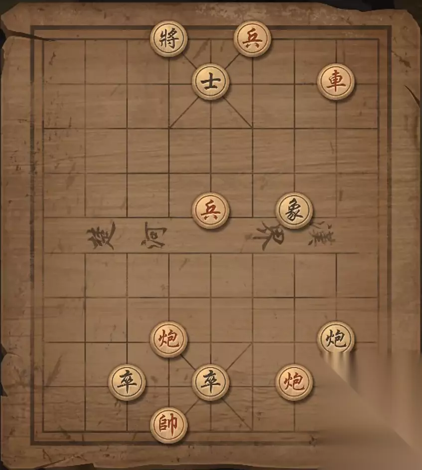 残局十:兵4平5,车2进一格,炮6平5,炮3进8格,炮3退3格,炮3平5,炮5平4,炮5将军。