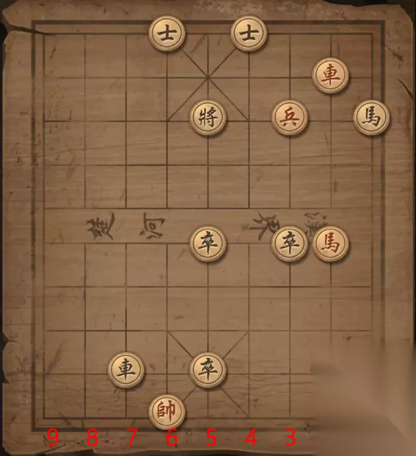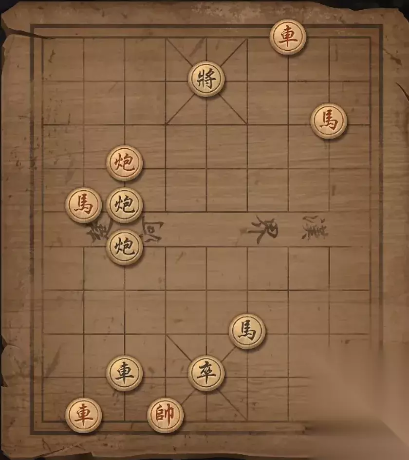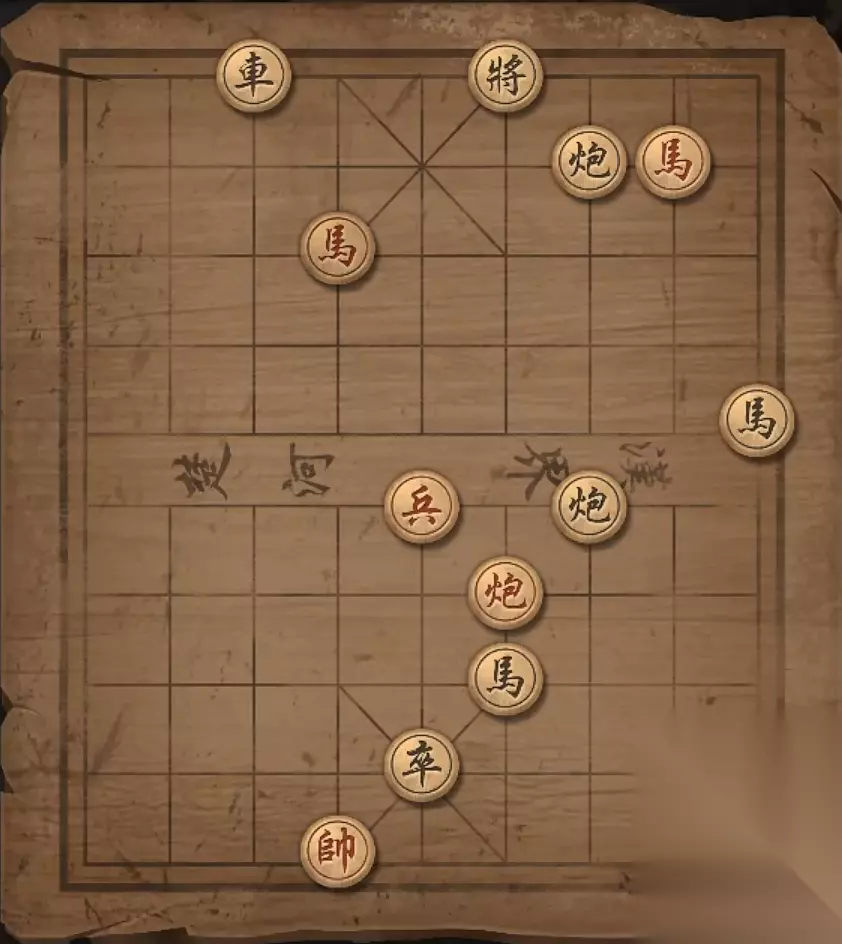 残局九:马8进7,车8进八格,车3平5,马2退3,将军。
