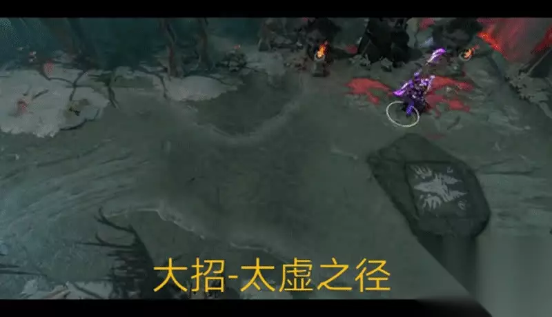 大招:太虚之径 解析:这项技能是虚无之灵的主要伤害技能。释放后,虚无之灵可以对沿着直线路径的所有敌人造成伤害,并施加太虚印记,使敌人减速并受到大量伤害。与剑圣的大招非常相似,但剑圣的大招是以目标为单位释放,而虚无之灵可以点击地面释放。 释放这项技能需要消耗一点能量,最好能够积攒两点能量一起释放,这样可以提高伤害输出。