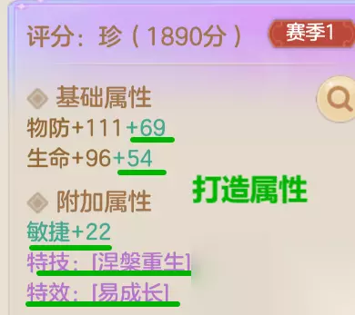 通过打造系统,装备可以获得【打造属性】。打造属性包括: ①基础属性的强化部分; ②附加属性; ③特技特效。 打造属性在赛季内具有永久继承特性,在更换更高级装备时,打造属性将随之同步增长,无需重新更新打造。