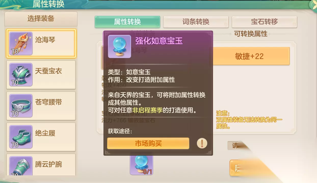 当附加属性不符合要求时,可使用如意宝玉进行转换(双属性不可转为相同属性)。