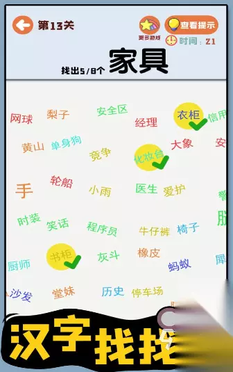 游戏涵盖了基础的拼音知识学习,以及汉字书写和古诗词赏析等内容。游戏巧妙地把经典故事与识字环节相结合,让学习过程不再枯燥,玩家的学习积极性自然大大提升。此外,它还设有多样的趣味造词组句识字课程,这些课程同样与经典故事相融合,能有效激发玩家自主学习的热情,让玩家愿意持续探索知识的海洋。游戏采用科学的识字认字方法,引导玩家循序渐进地掌握汉字知识,为玩家的识字学习之路保驾护航。 手机扫码下载233乐园APP预约 预约订阅最新动态 优先233乐园APP下载 9、《汉字找找看》