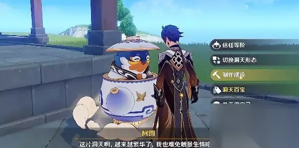 2、然后点击阿圆进行对话,选择制作摆设选项。