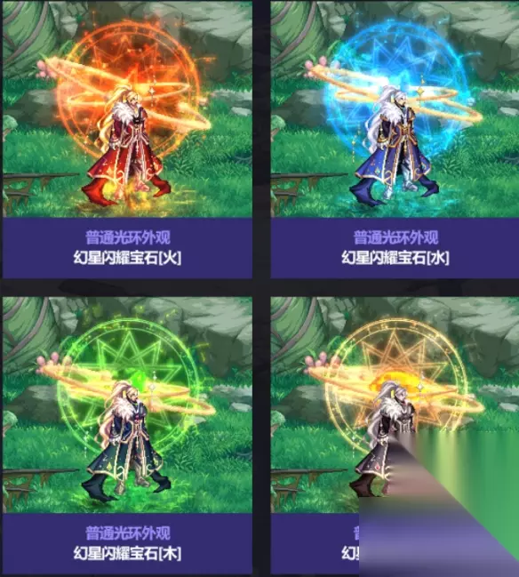 2、光环 名字为幻星闪耀宝石,分为木、水、火、土四种光环,每个光环颜色不同。