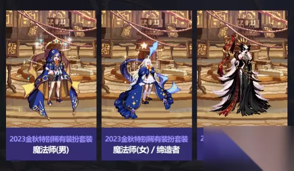 dnf国庆套2023礼包内容 1、时装 分为普通款式、特殊款式和稀有款式,其中今年的稀有款时装只有男女魔法师、缔造者和暗夜使者,暗夜使者的整体画风与同时期不同。