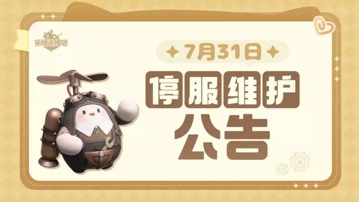 为了优化各位梦想家的游戏体验,米姆米姆哈已于2025年7月31日(周四)03:00--06:00进行停服维护更新。