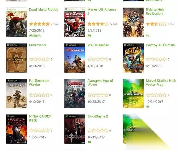 以上五款游戏都是标注2018年4月10日,很显然这些游戏将在微软广播节目Inside Xbox结束后就会立刻上线。 据悉这将是第二批加入Xbox One向下兼容的初代Xbox游戏。首批加入的233乐园括《忍龙:黑》、《星球大战:旧共和国武士》等。 游戏做向下兼容是游戏厂商很普遍的做法。最近,《上古卷轴3:晨风》、《毁灭全人类!》、《越野摩托车》、《全光谱战士》、《装甲精英》等五款在初代Xbox上首次发售的游戏将加入到Xbox One向下兼容中。一起来看看吧。