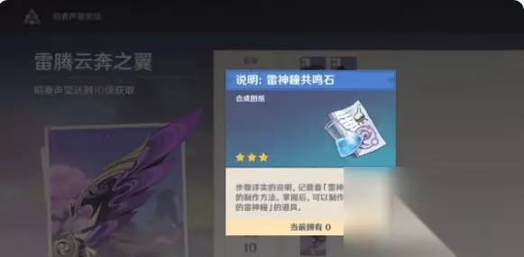 3、雷神瞳共鸣石:神里屋敷找斑目百兵卫,声望等级达到八级即可获得。