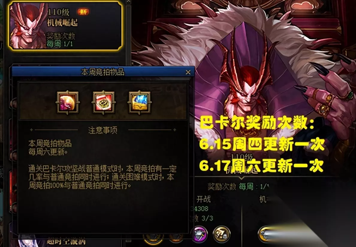 当然了,从6.15更新后就可以领取,大家也没必要单纯为了领一个光环就请假,在这个时间区间内,真正最重要的应该是:巴卡尔团本! 6.15(周四)上线刷新了巴卡尔团本次数,6.17(周六)上线又会再次刷新巴卡尔团本次数,所以大家需要在周四、周五两天内完成巴卡尔开荒,在周六的时候才能再打一次,不然就浪费次数了。 【第2个时间点】:6.17~6.19,必须上线!