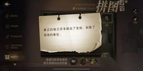 【拼图寻宝攻略大全】 寻宝攻略 线索:真正的格兰芬多拔出了宝剑,斩除了邪恶的象征。 位置: