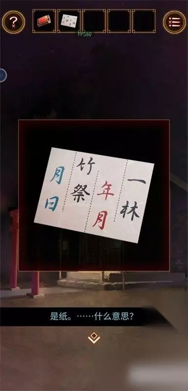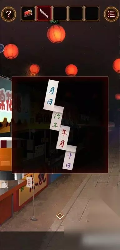 逃出庙会的那一天第八关怎么玩?通过什么方式可以逃离第八关,有没有什么即死flag的触发,谜题怎么解决。在这里小编为大家总结了一下逃出庙会的那一天第八关怎么玩的攻略,有想要玩的玩家可以参考一下。 逃出庙会的那一天第八关攻略 第八关全程触发以及话语 拉动神社门边的绳子,飘下来一张纸,捡起纸和火柴盒。 与小女孩对话。 去好味烧摊用剪刀剪纸,点一下。 与桥边的孩子对话,用火柴点燃蜡烛。 仔细看小女孩燃放烟花的顺序。 顺序为,红、蓝、绿、紫、蓝。 对应纸上的颜色,再根据神社前柱子上的字。