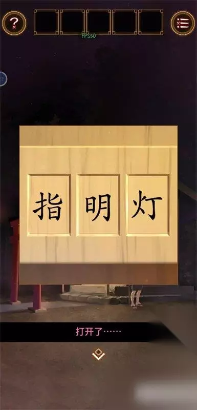 得知神社墙上面具摆放顺序: 火男面具→笑翁面具→阿龟面具→黑狐面具 将前途照亮的指明灯。 密码输入指明灯,获得最后一块面具碎片。
