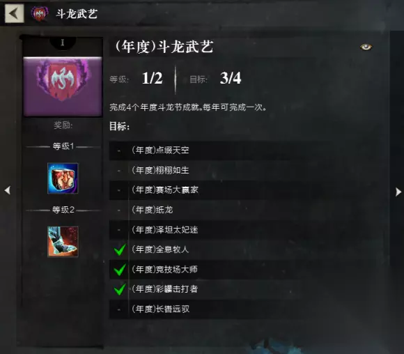 (请注意,成就无需全部完成,只要完成7个即可~) 解锁需要在斗龙节期间完成(年度)斗龙武艺成就