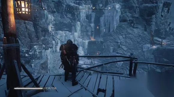 女战士具体位置在截图位置的滑索,滑下去就是。如果选左路应该可以走冰桥过去。