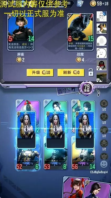角色卡牌有阵营之分,每个阵营麾下都有不同的角色卡牌。包含了保卫者、潜伏者、谍报特工、审判之眼和幽灵等多个大类。当相同阵营麾下的角色上场2名和4名时,都有相应BUFF被激活,包含一个阵营BUFF和相应的数值加成。比如上述阵营中的BUFF各有特点,其中包括保卫者:战斗中,保卫者每次失去护盾时,获得属性;潜伏者:潜伏者获得 遗言:使所有友方获得增伤;谍报特工:谍报特工受到攻击时,所有友方永久获得生命;审判之眼:回合开始时,使商店随从永久获得属性;幽灵:场上所有角色阵亡时,召唤钢铁终结者。
