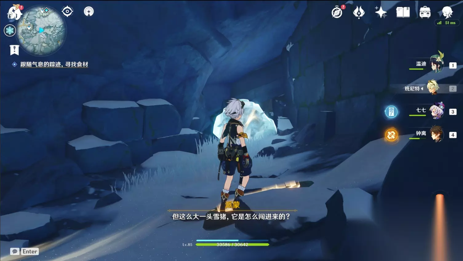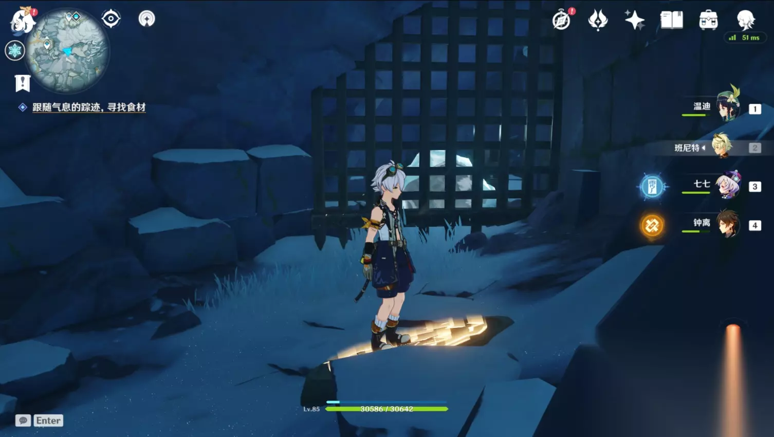 跟随气味我们来到星荧洞窟口(传送到该点位往下走即可)。