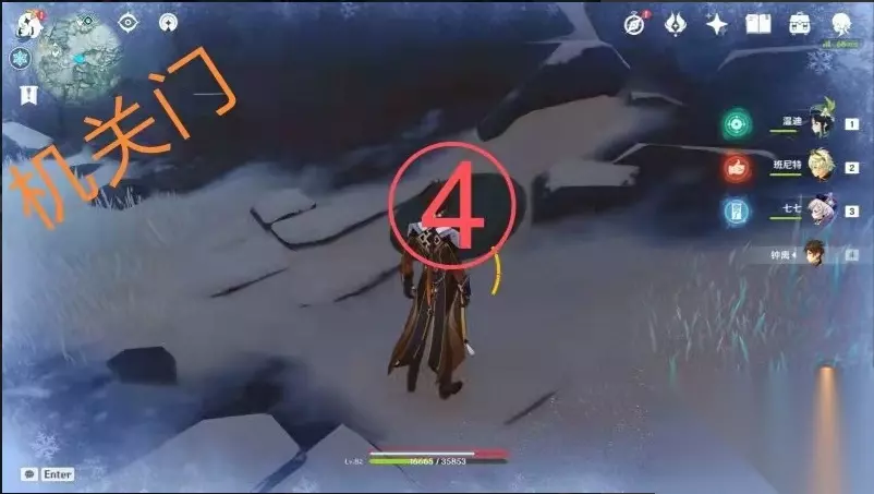 往里走发现这次的食材是雪山冷冻野猪,被机关关起来了,需要解开四个被雪埋起来的机关方可打开(雪山连连看那个机关)。