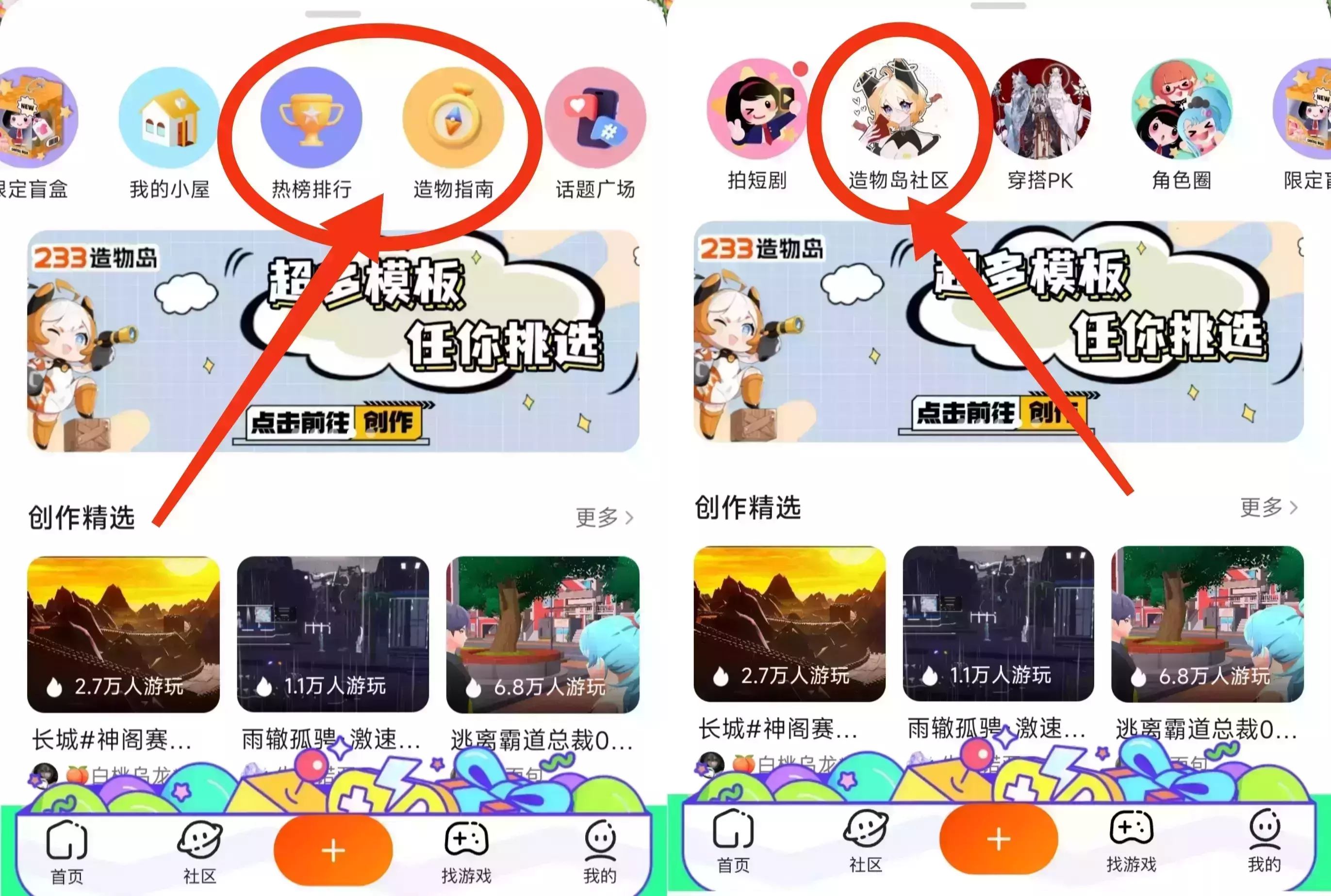 ①造物图标二创(尺寸1:1,背景形状为圆形最佳):在乐园底部中间的图标,可以看到与造物岛相关的图标(造物岛社区、热榜排行、造物指南),期待大家根据图标标题和内容来为进行创作绘画,有机会让自己的作品展示在这里哦~