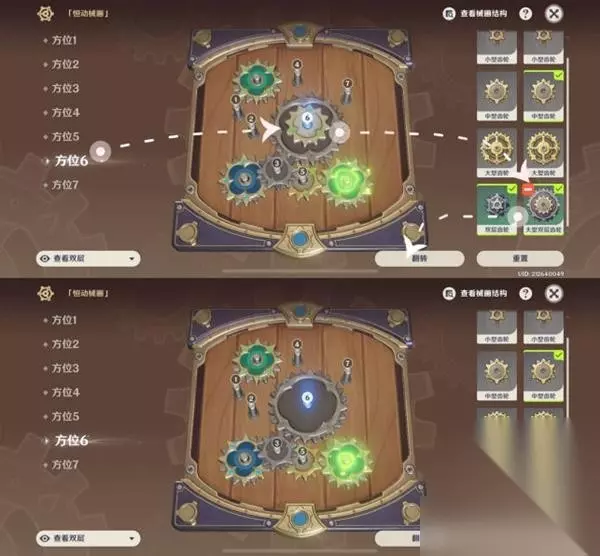 方位3,双层齿轮,(因卡齿原因会自动翻转,无需过多操作,摆上即可)