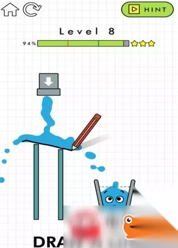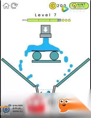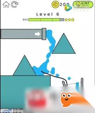 happyglasses快乐玻璃杯第5关 中间的三角形会将水引流,两侧都会有水流出!所以我们只要想办法将两边的水汇集在一起就可以啦。 左边的斜坡划一条线,引流到水杯中,右边的斜坡也是同样的原理,但是两根线在水杯中不能重叠哦,不然水是不能流进去的! happyglasses快乐玻璃杯第6-10关快速通关技巧图文一览: