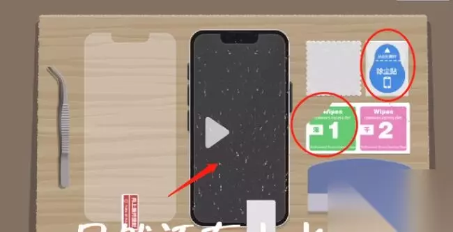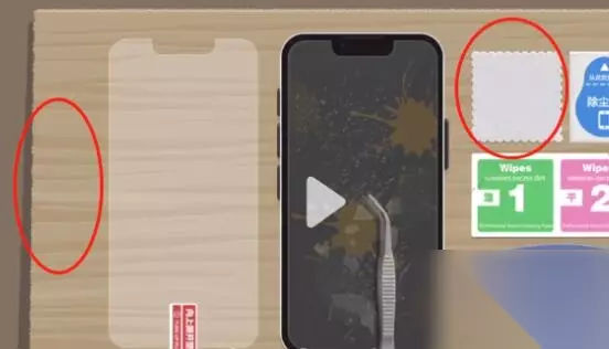湿纸巾擦拭后可能会留下小水珠,使用干纸巾擦拭即可。最后,将新膜贴在屏幕上,并使用塑料板挤掉气泡,这样就可以通关了!