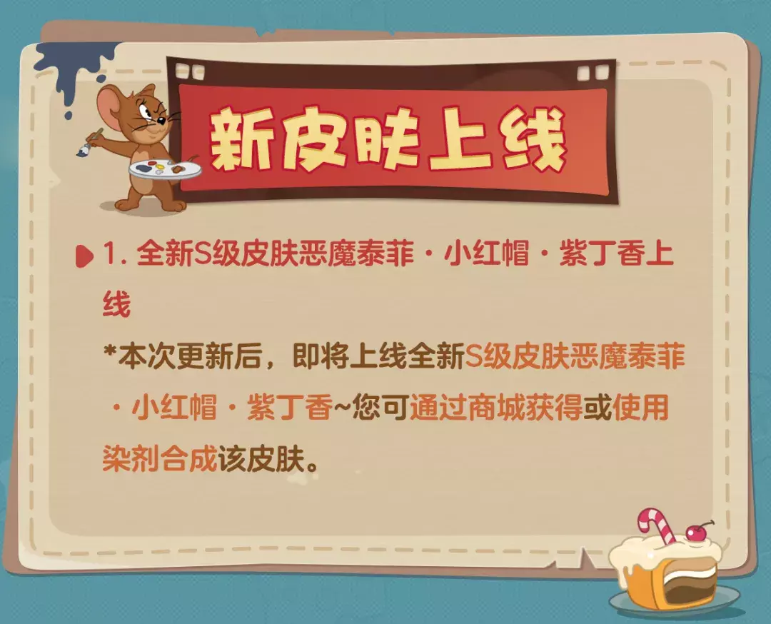 *本次更新后,即将上线全新S级皮肤恶魔泰菲·小红帽·紫丁香~您可通过商城获得或使用染剂合成该皮肤。