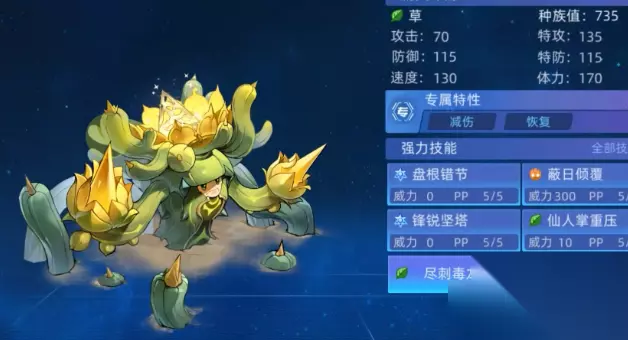 参天巨型仙人掌种族值总和虽暂未公布详细数据,但从其在对战中的表现以及草系精灵的一般特性来看,具有一定的特点,体力方面推测较为可观,能为其在对战中提供一定的生存基础,不至于轻易被对手的攻击所击败,草系精灵通常在特攻方面有不错的成长,参天巨型仙人掌也不例外,特攻属性决定了它在特殊攻击方面具备较强的潜力,配合一系列草系特攻技能,可对敌方造成可观的伤害,在防御和特防上虽不会过于突出,但也能在面对物攻和特攻型对手时,提供一定的抗性,保障自身在战斗中的稳定性,速度方面可能不会太快,这也决定了它在对战中的出手顺序策略需要更多地依靠技能机制来弥补。